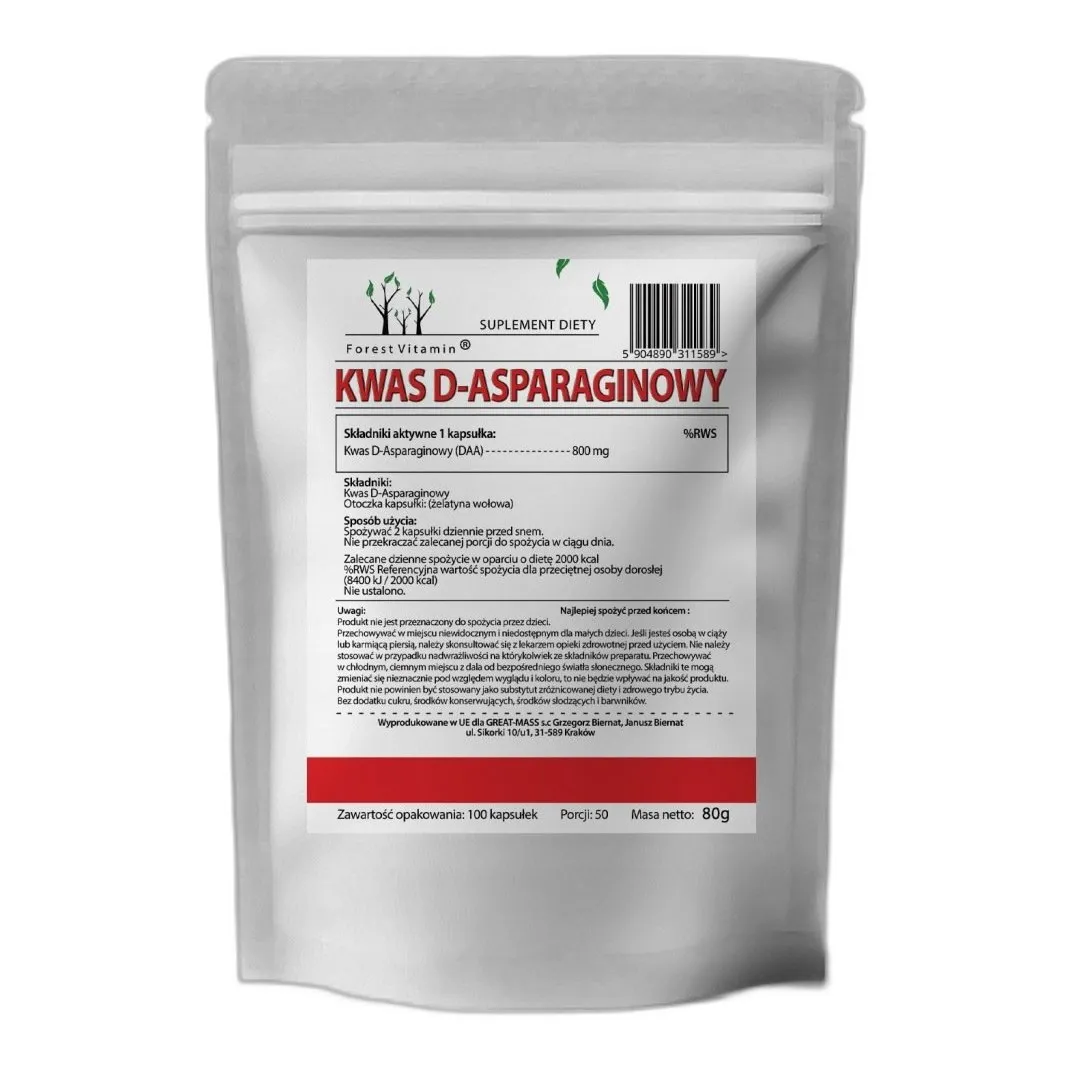 Kwas D-asparaginowy bierze udział w syntezie hormonów. Wspiera naturalny poziom testosteronu u mężczyzn.