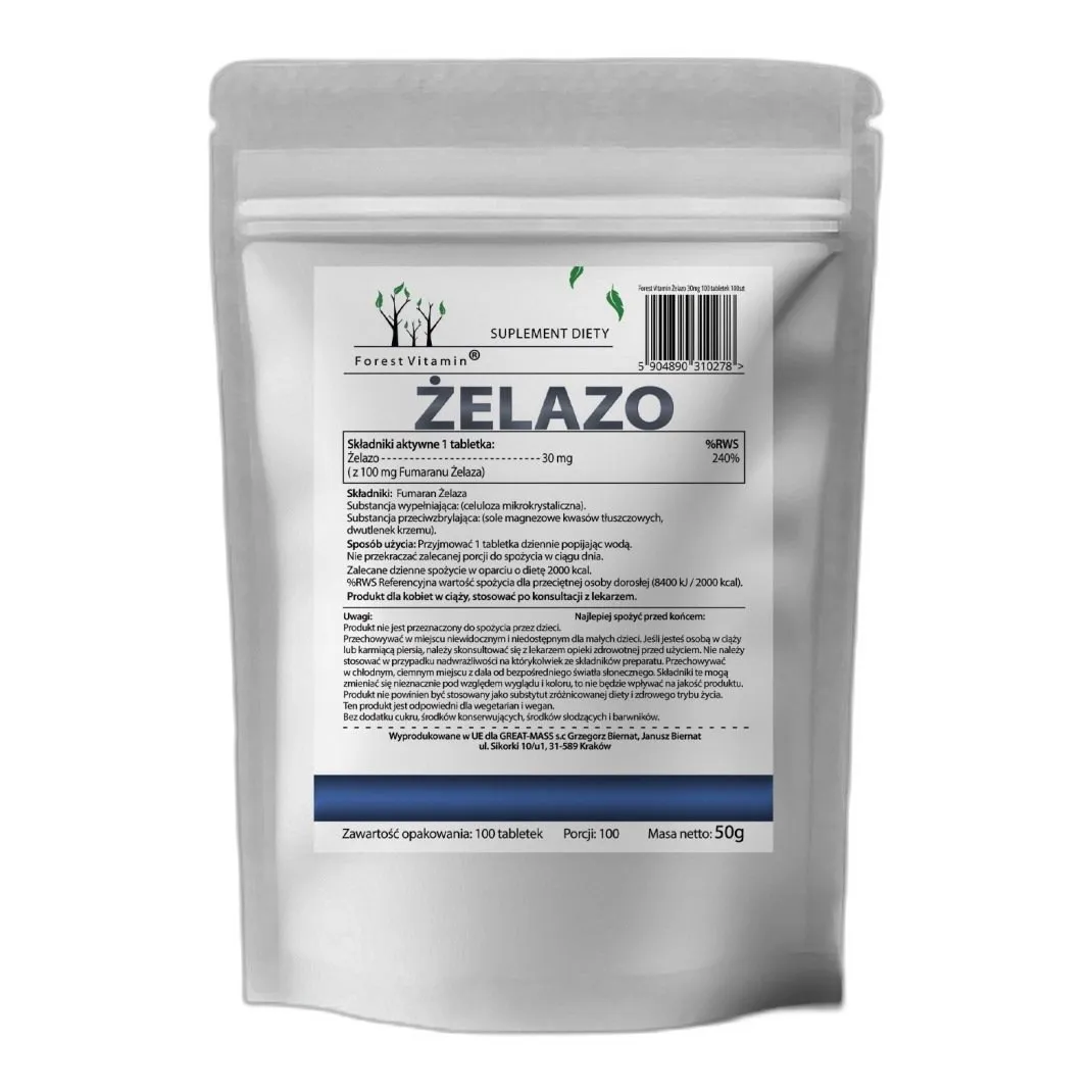 ŻELAZO 30mg PRZYSWAJALNE ORGANICZNE 100tab MOCNE FUMARAN ŻELAZA